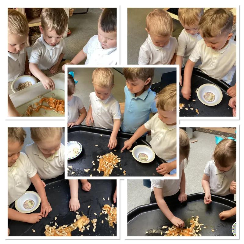 In Nursery, we’ve been exploring all things autumn! 🍂 The children had lots of fun investigating the inside of pumpkins — feeling the textures, separating the seeds from the gunky insides, and talking about what they discovered. It’s been a wonderful hands-on way to explore the season!